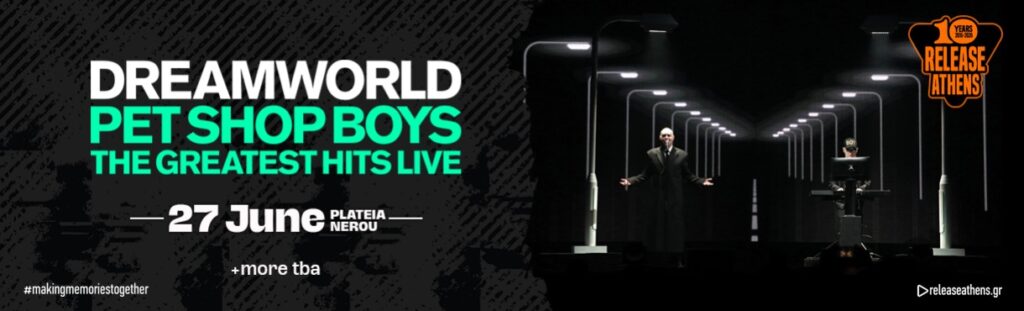 Το Release Athens 2026 υποδέχεται τους Pet Shop Boys το Σάββατο 27 Ιουνίου, στην Πλατεία Νερού. Τέσσερα χρόνια μετά τον θρίαμβο του 2022 — ένα από τα πιο δυνατά και πολυσυζητημένα shows στα 10 χρόνια του φεστιβάλ — οι Neil Tennant και Chris Lowe επιστρέφουν στην Αθήνα με μια ακόμη μεγαλύτερη παραγωγή, έτοιμοι να χαρίσουν στο κοινό μια από τις πιο αξέχαστες βραδιές του καλοκαιριού. Περισσότερα ονόματα θα ανακοινωθούν σύντομα.